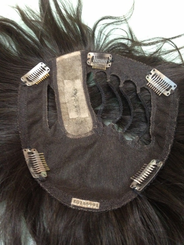 このかつらは、分け目部分のみ自然な地肌を使用し、右側からは自毛を引き出せるタイプのヘアピースです。