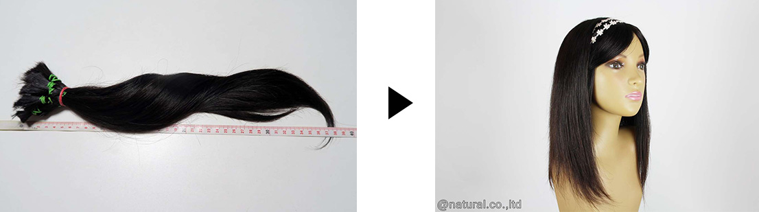 - 送って頂いた髪を、工場へ送りつけ毛を作成できるだけ作ります。